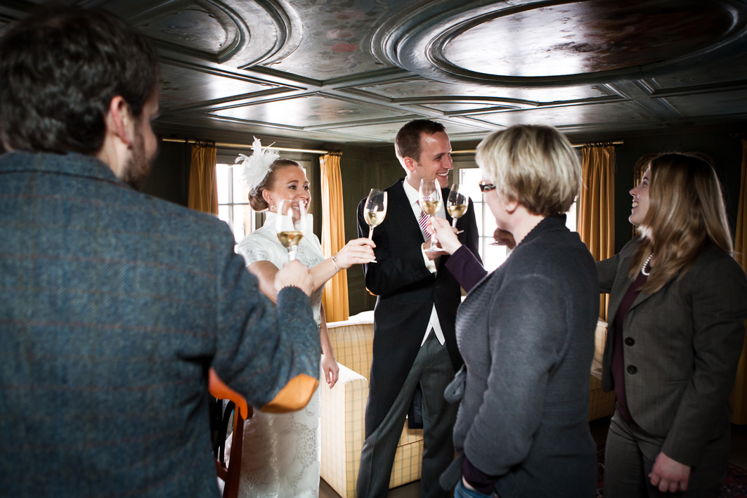 Ende Januar war ich in Österreich um die Hochzeit von Verena und Jan zu begleiten. Die begeisterten Wintersportler hatten ihre Familien und Freunde in den Bregenzer Wald geladen und als sich die Gesellschaft am Freitag zu Käsespätzle und "zünftiger Musi" versammelte, verzauberte ausreichend Neuschnee die abendliche Winterlandschaft. Leider fing es samstags, pünktlich zu den Vorbereitungen, in Strömen an zu regnen, so dass wir in dem schwimmenden Matsch keine Aussenaufnahmen machen konnten. Tja, das ist nun mal so eine Sache mit dem Wetter - aber richtige Wintersportler fahren bei Wind und Sturm Ski und heiraten natürlich auch bei Regen - und feiern ausgelassen den "Apres-Ski", wie man auf den Bildern erkennen kann